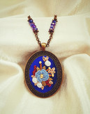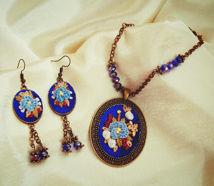 هنر گلدوزی ممتاز ؛ پارچه استفاده شده در قابها از جنس مخمل مرغوب به رنگ آبی که یک رنگ سلطنتی است و گلدوزی آن با نخ دمسه فرانسه انجام شده است ، این نوع نخ به درخشش و کیفیت بالای دوخت شهرت دارد.