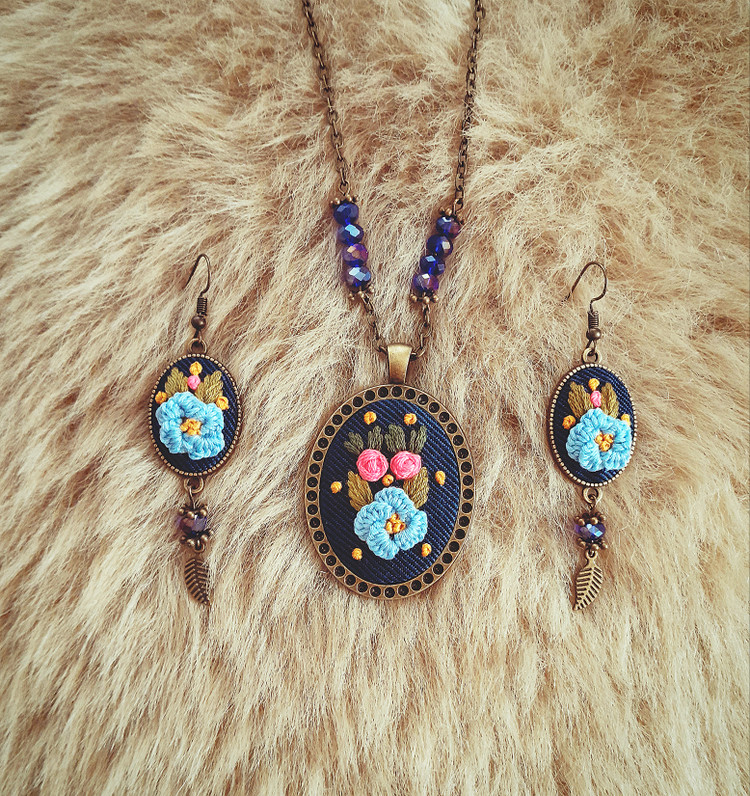 ست گلدوزی آبی زیبا