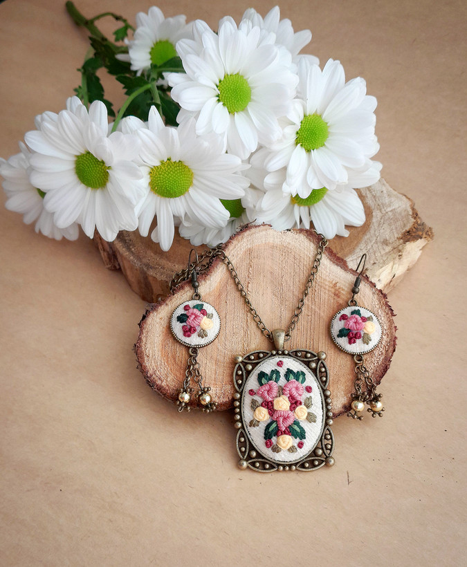 نیم ست گلدوزی گلهای بهاری