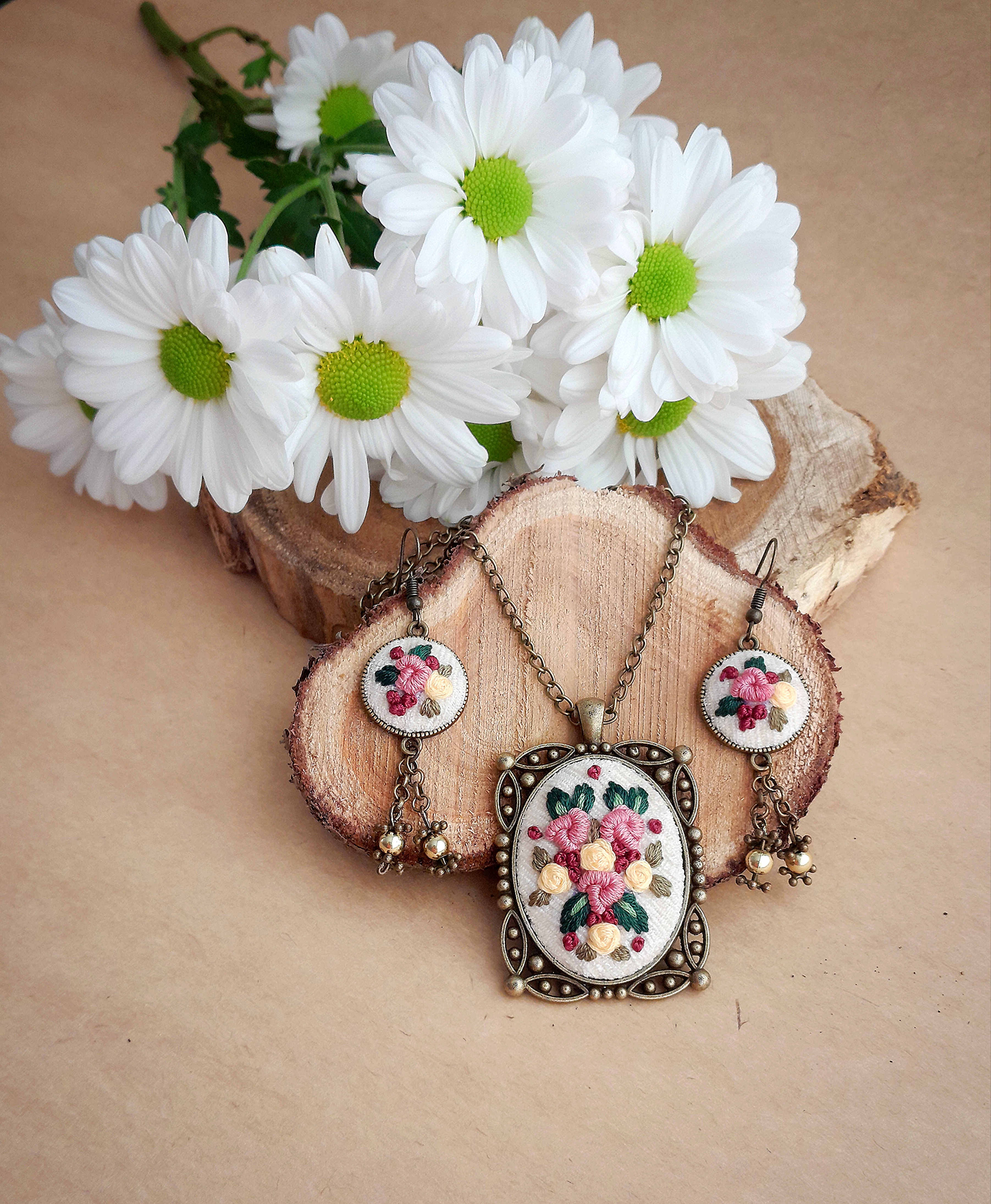 نیم ست گلدوزی گلهای بهاری