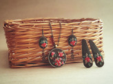 نیم ست گلدوزی گل قرمز
