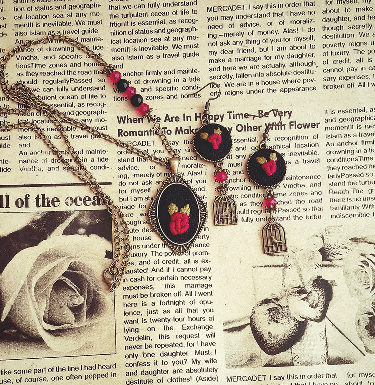 ابعاد مناسب : ابعادگردنبند 4*3 سانتی متر و ابعاد گوشواره ها2*2 سانتی متر می باشد.